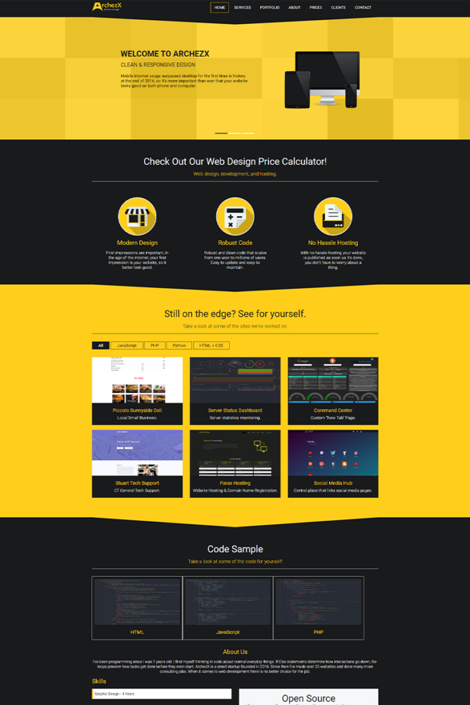 - Implemented frontends using React, jQuery, Vue, vanilla HTML/CSS, etc.